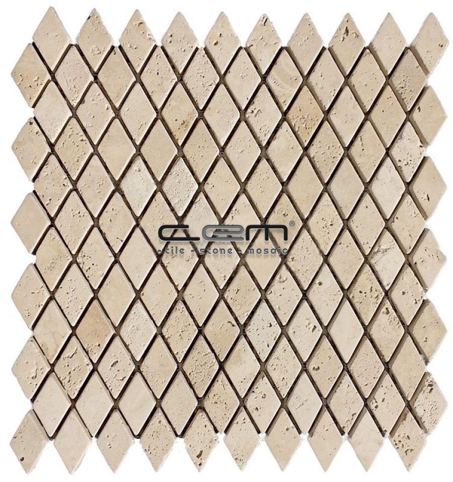 1x1 - 23mmx23mm Ivory Classic Travertine Diamond Tumbled Mosaic