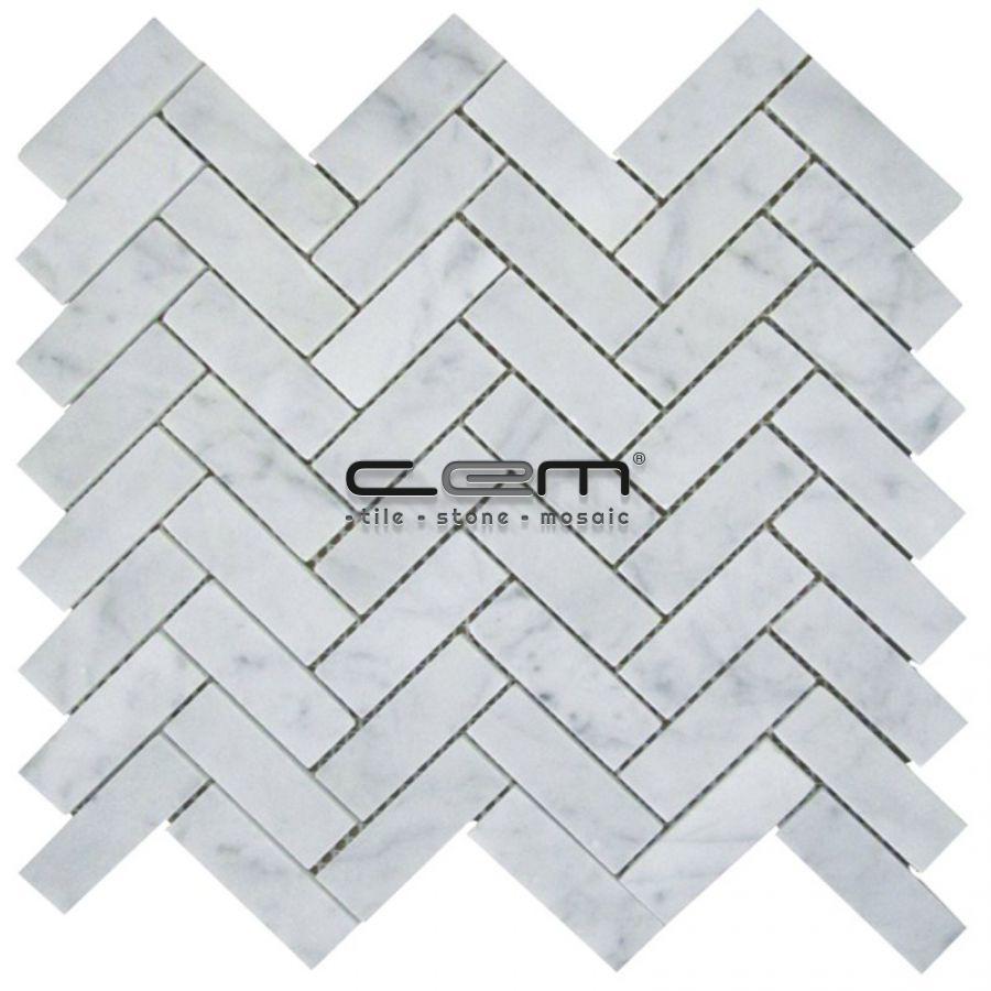 1x3 -25mmx75mm White Bianco Carrara Marble Herringbone Polished Mosaic