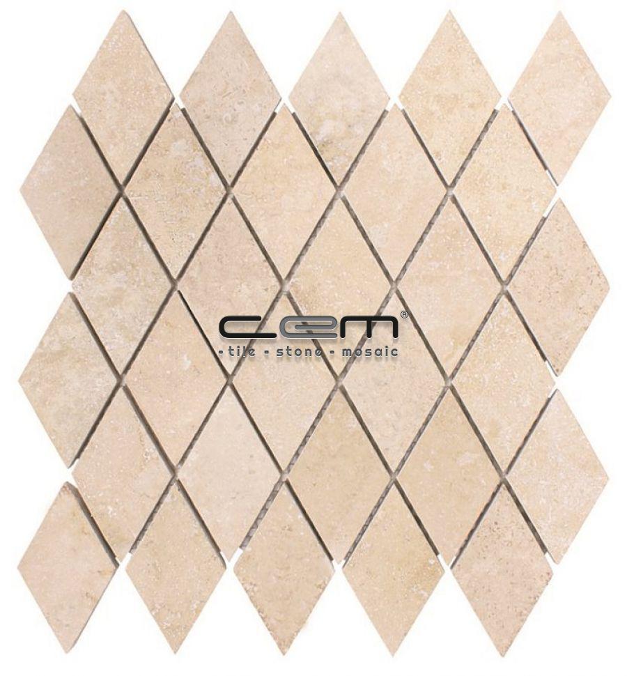 2x2 - 48mmx48mm Diamond Ivory Travertine Filled Honed Mosaic