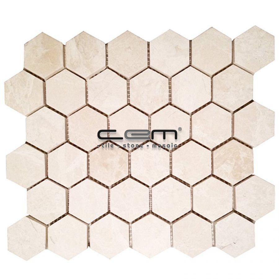2x2 - 48mmx48mm Light Beige Botticino Honey Comb Hexagon Polished Mosaic