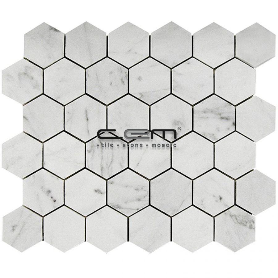 2x2 - 48mmx48mm White Bianco Carrara Honey Comb Hexagon Polished Mosaic