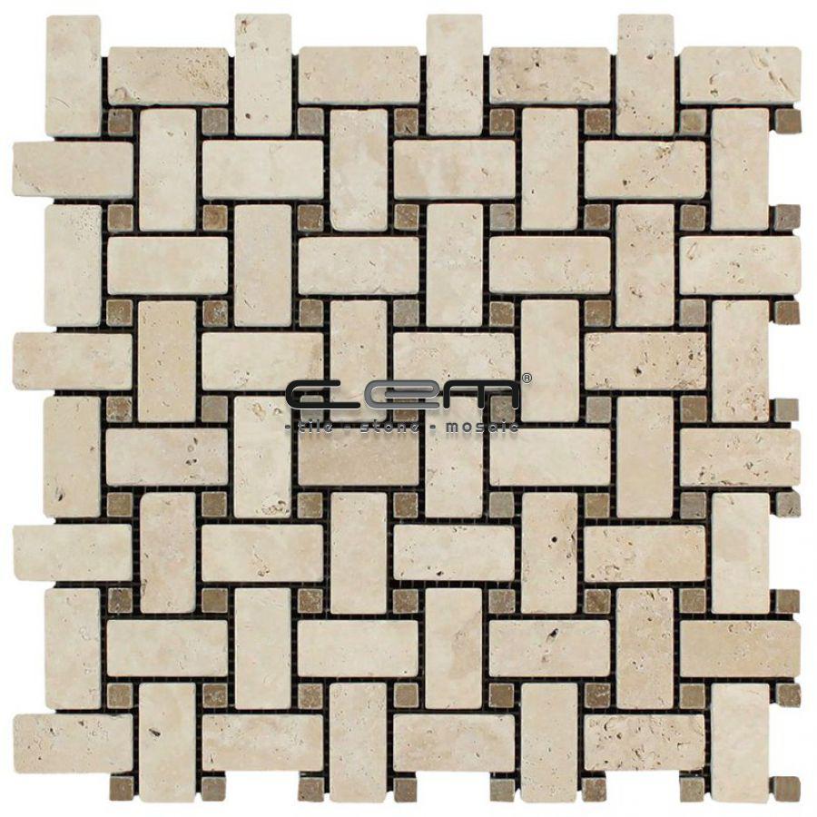 Ivory - Noche Travertine Basketweave Tumbled Travertine Mosaic