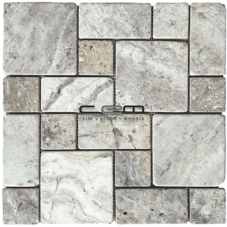 Gümüş Traverten Roman Pattern Eskitme Mozaik